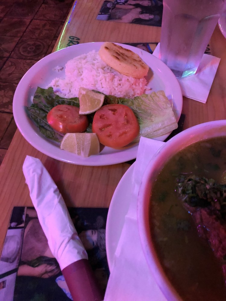(pequeno) (beef ribs soup w/ potatoes, cassava, green plantains served with rice & arepa)